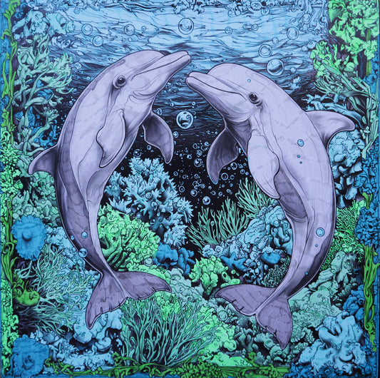 Dolphin Duo Harmony Colouring Products - Intricate Aquatic Art | iColor